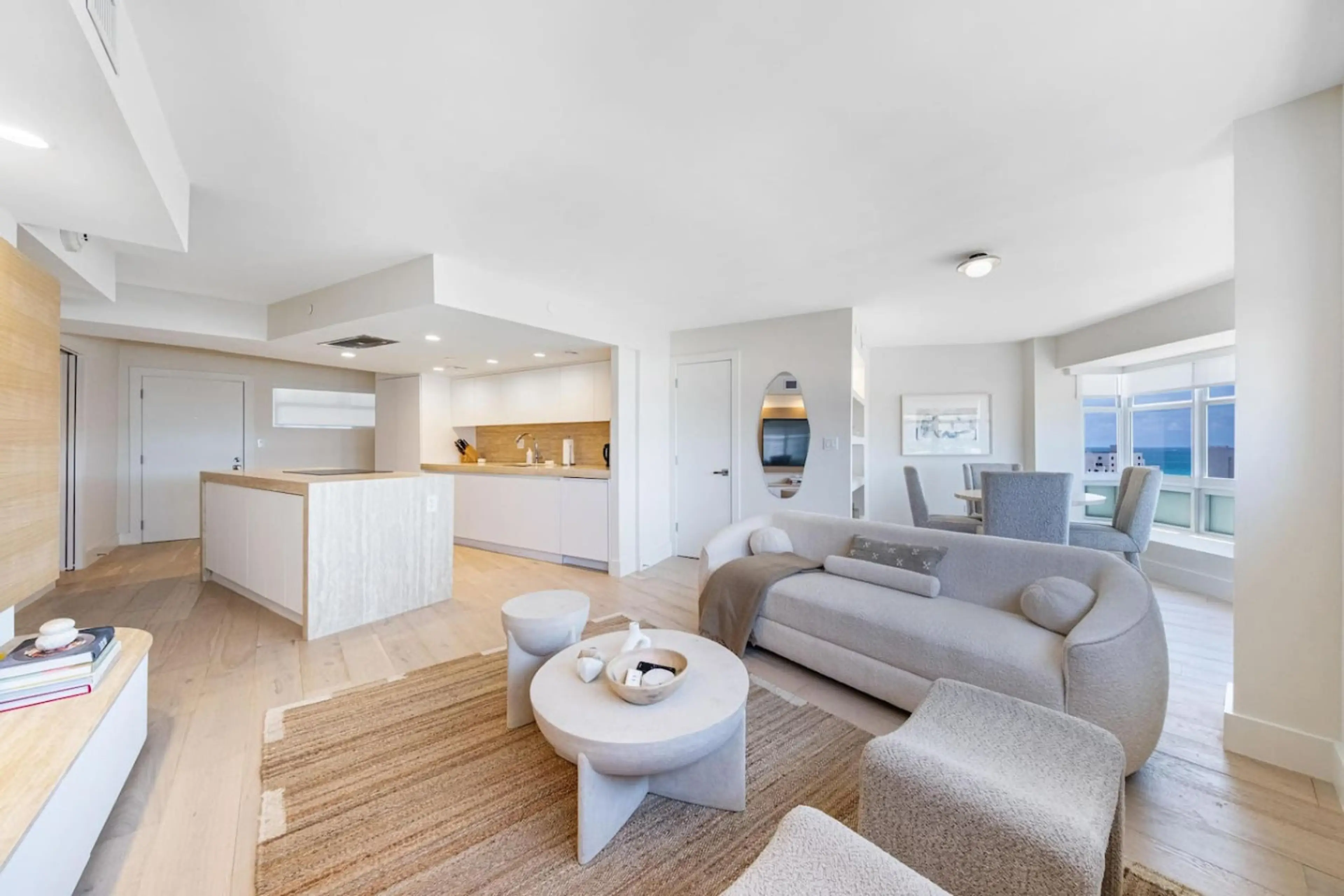 Enjoy city views from this 14th-floor 1BR condo with 1.5 baths and a plush king bed. Sleeps 2, with a scenic skyline view dining area and a full kitchen with dishwasher. Relax with a Smart TV in the living room or head downstairs to the shared pool and gym. Just minutes from the beach, cafes, and Mi...