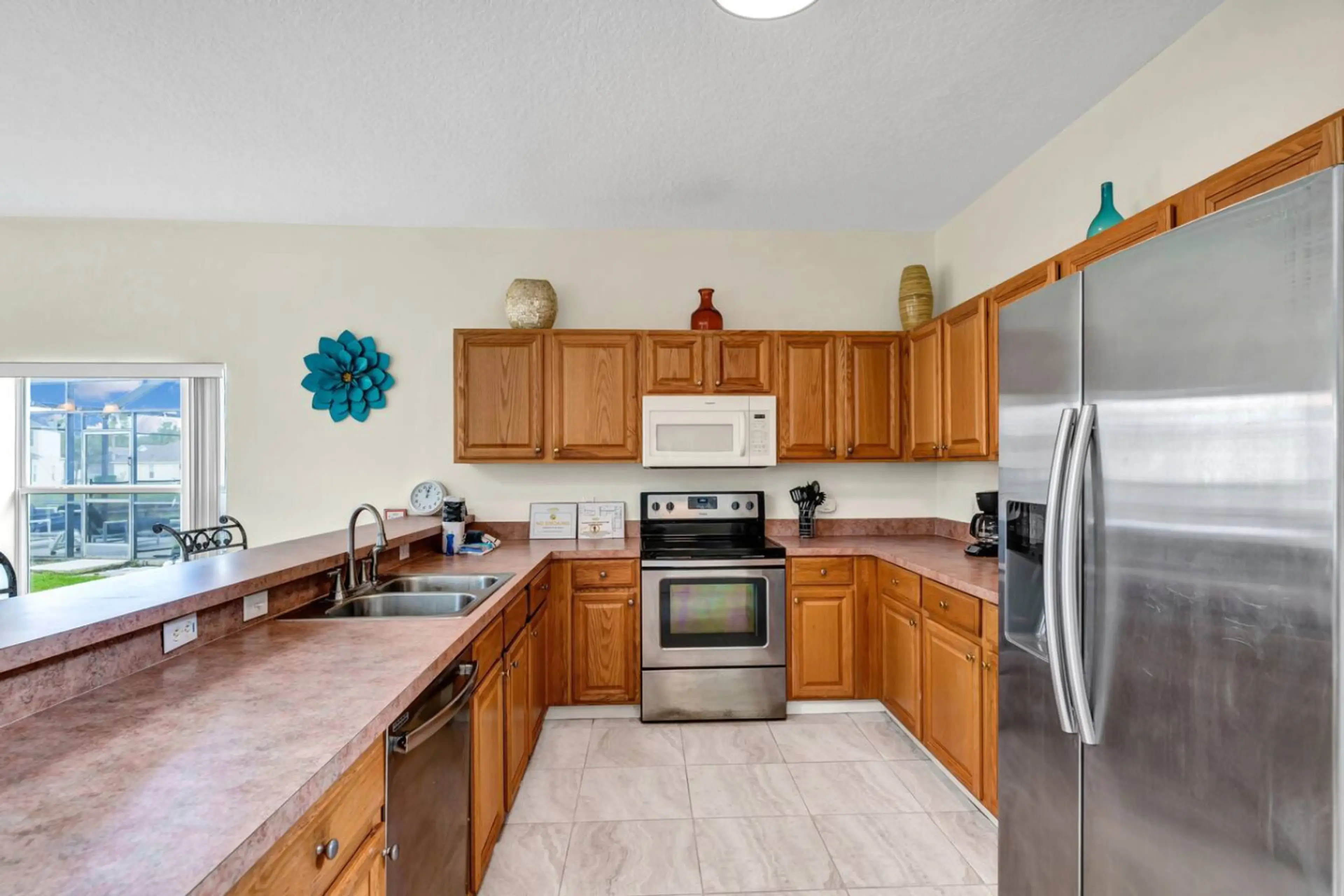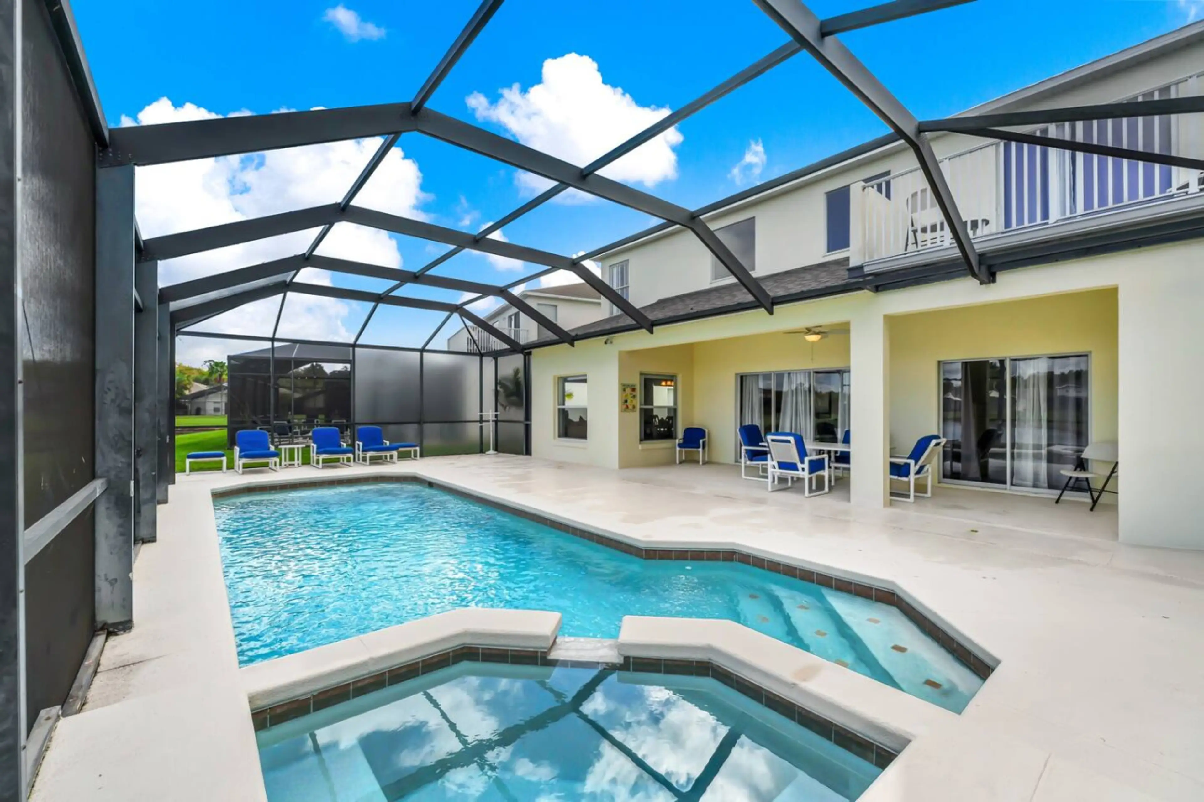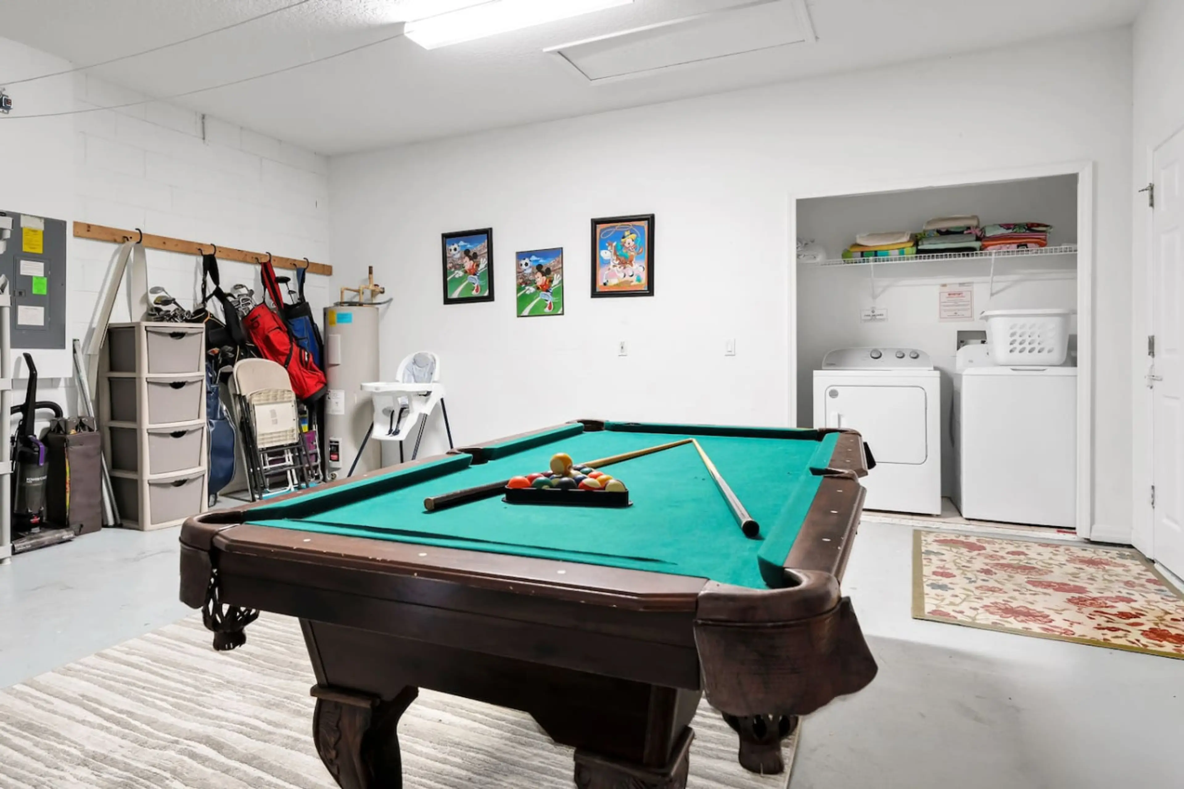 Relax in this spacious 2-floor home just minutes from Disney. Features 5 bedrooms + 1 den converted bedroom, 3.5 baths, and room for 12 guests. Enjoy a private pool, patio hangouts, and a game room with a pool table. Stay connected with a smart TV, use the washer/dryer, and park easily with a free 2...