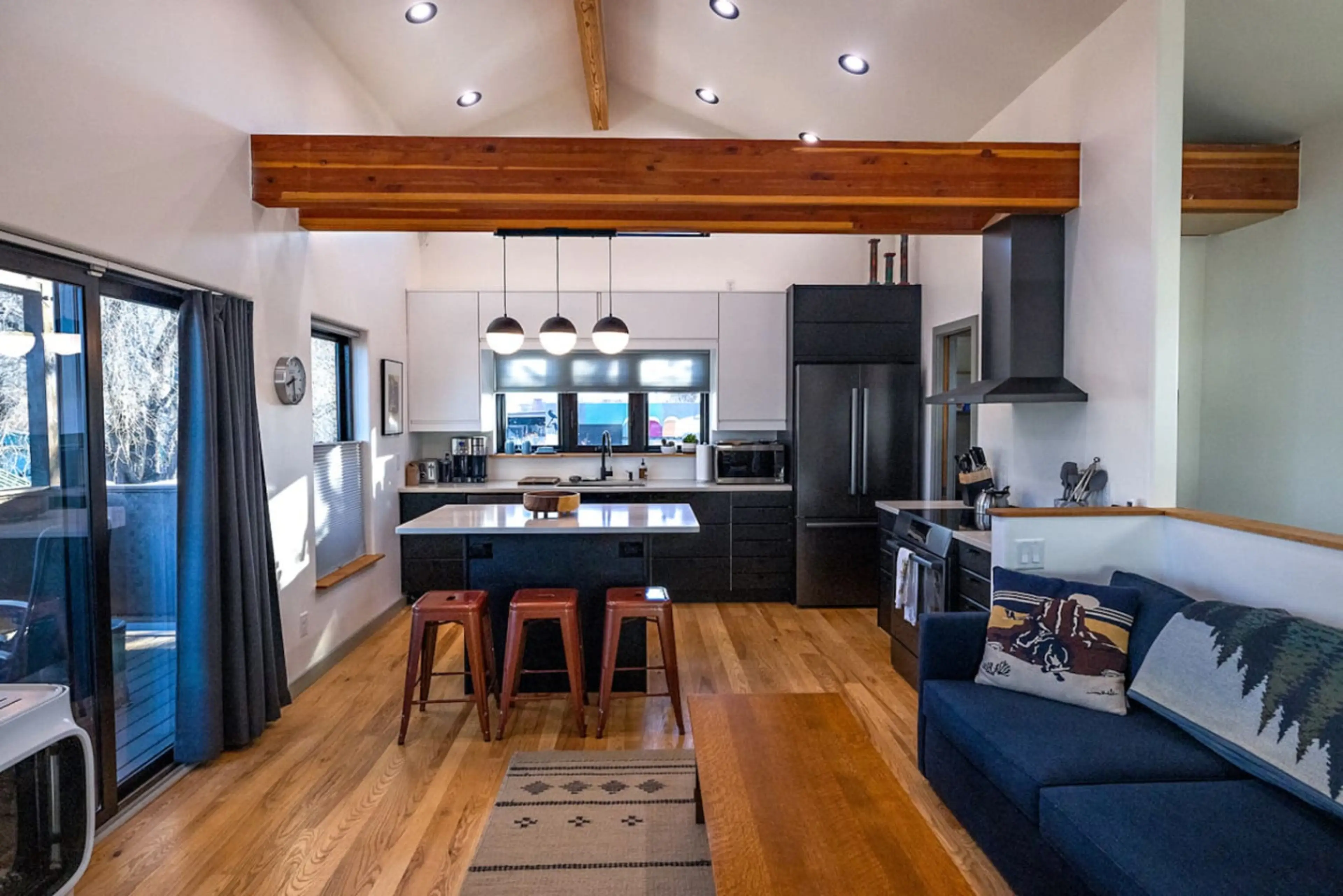 Spacious 2BR retreat with two king beds, loft bed, and sofa bed. Enjoy a private balcony, outdoor fire pit, pizza oven, and record player. Fully equipped kitchen, kitchenette with wine cooler, Smart TV, fast Wi-Fi, and washer/dryer. Minutes from Downtown Flagstaff, NAU, Snowbowl, trails, and the Gra...